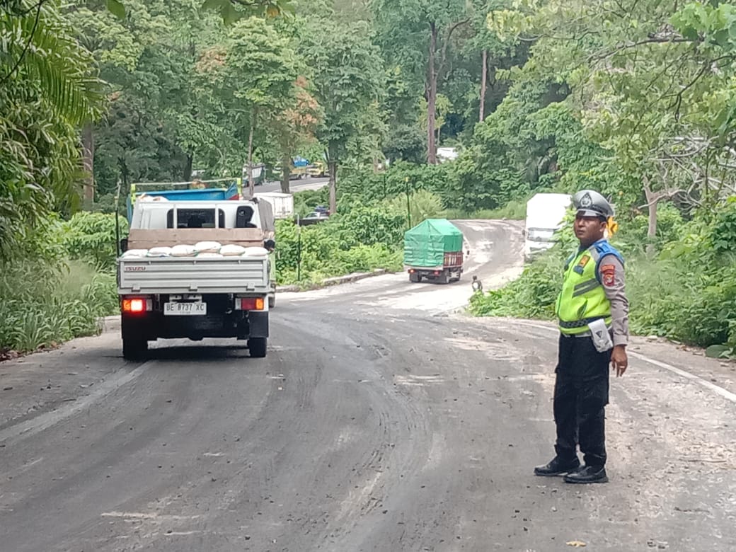 Polsek Pesisir Utara Polres Pesisir Barat Laksanakan Giat PAM dan Gatur Lalin di daerah Tebing Bayu Hutan TNBBS Jalan Lintas Barat Pekon Rata Agung Kec. Lemong Kab. Pesisir Barat, Kamis (07/3/24) pukul 08.30 Wib.