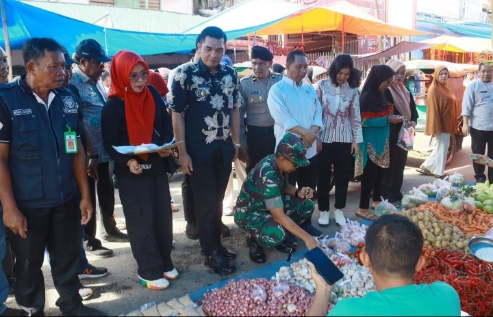 Dandim 1426/Takalar Letkol Kav Nanang Sujatmiko, M.Han bersama jajaran Forkopimda Takalar laksanakan operasi pasar dengan mengecek langsung Harga dan ketersediaan kebutuhan bahan pokok masyarakat di pasar Tradisional Pattallassang Kecamatan Pattallassang Kabupaten Takalar Provinsi Sulawesi Selatan Jum’at 08/03/2024.