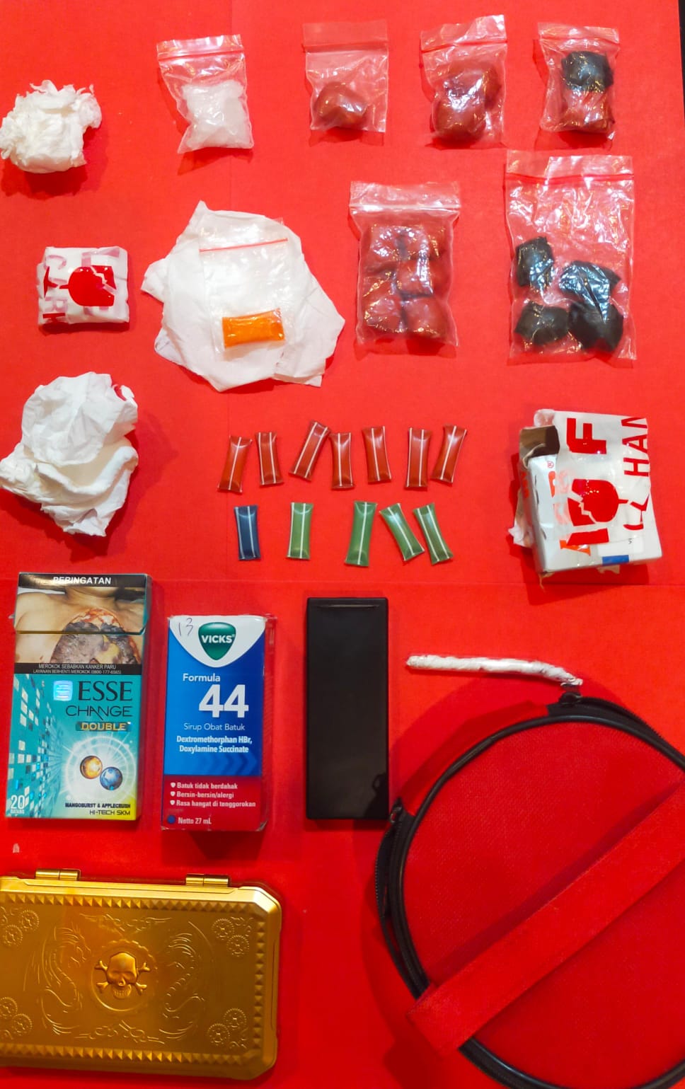 penggeledahan di rumah pelaku tersebut di dapati barang bukti berupa satu tas kain parasit berisi bungkus obat batuk merk Vicks dan 14 plastik klip ukuran sedang.