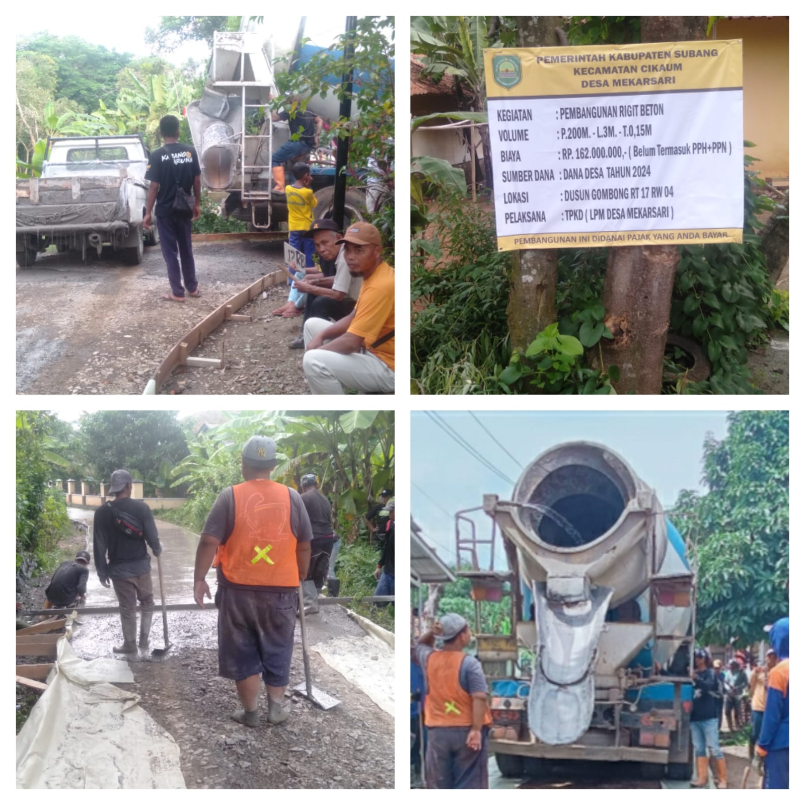 Dalam pelaksanaan rigitbeton jalan di dua dusun, khususnya didusun gombong Rabu – 28 Februari 2024, dengan luas panjang 200 M. Lebar 3 M. dan tebal 0,15 Cm, dan dusun bojong ciawitali satu, Jumat 08 Maret 2024, dengan luas panjang 460 M. lebar 3M. dan tebal 0,15 Cm, itupun dalam pelaksanaan pekerjaan tidak bisa langsung, sistem pengecorannya harus dipok dengan mobil bak ( Pick up/engkel ) ,dikarenakan mobil jayamix terlalu besar dan lebar,sehingga tidak bisa masuk ke jalan tersebut, adapun pembangunan rigitbeton jalan dengan menyerap anggaran Dana Desa ( DD ) tahap l Th 2024.