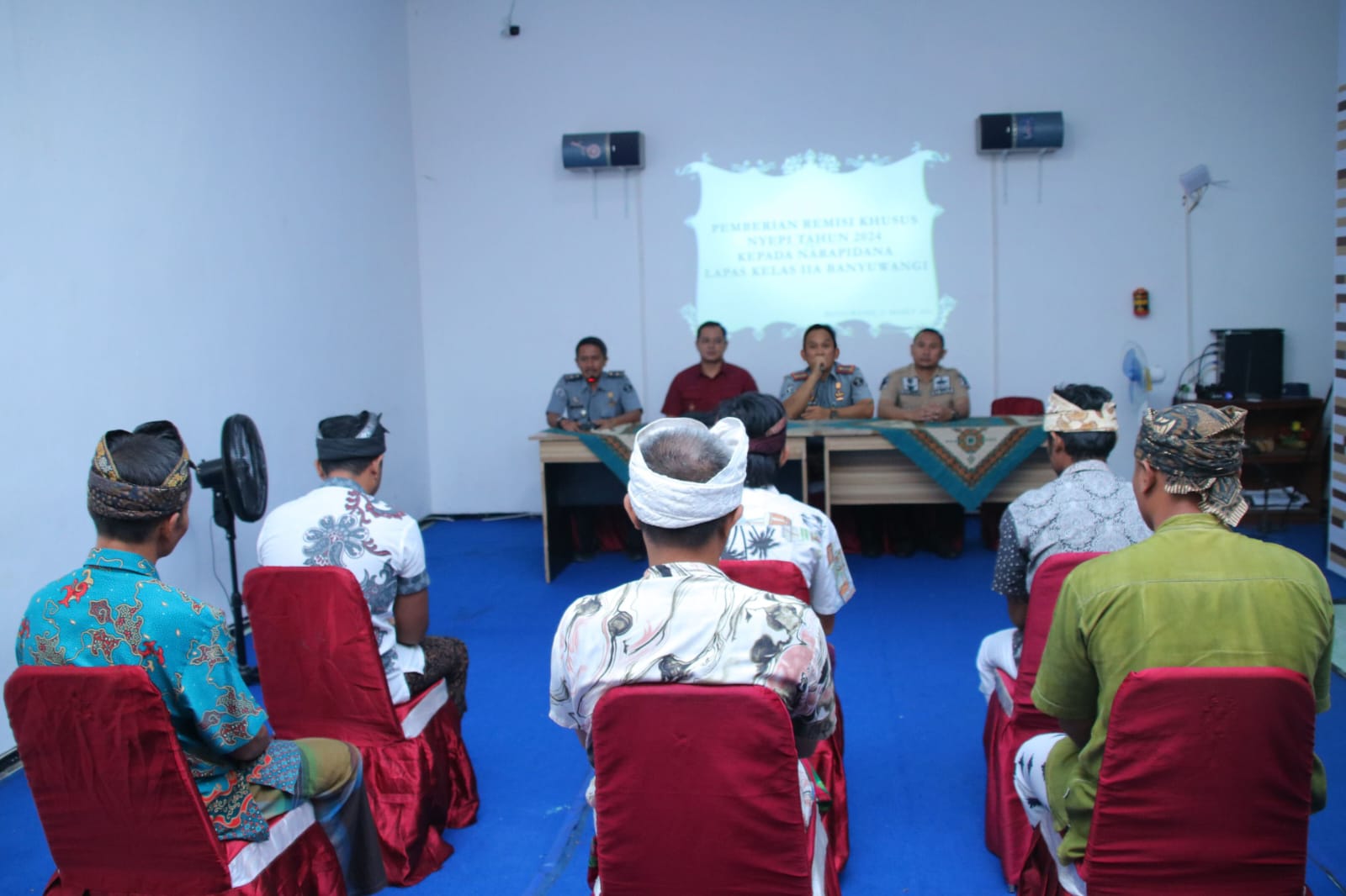 Momen Perayaan Hari Raya Nyepi Tahun Baru Saka 1946 pada tahun 2024 membawa kebahagiaan tersendiri bagi empat Warga Binaan Lembaga Pemasyarakatan (Lapas) Kelas IIA Banyuwangi. Pasalnya, empat Warga Binaan yang beragama Hindu itu mendapatkan remisi atau pengurangan masa pidana.