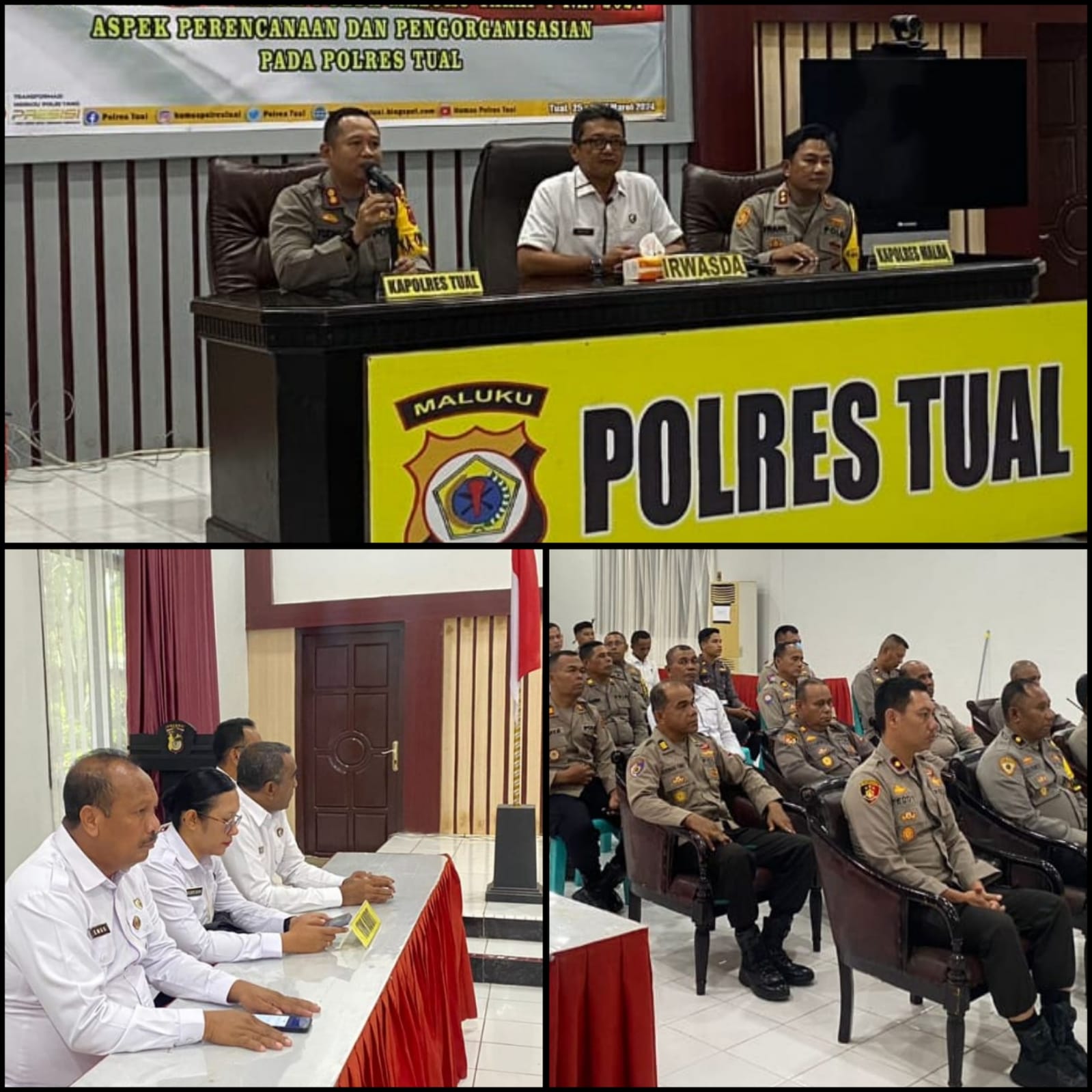 Usai dilakukan taklimat awal dilanjutkan dengan pemeriksaan terhadap Polres Tual, juga pemeriksaan dilakukan terhadap masing-masing bagian, fungsi, seksi, serta polsek terkait aspek perencanaan dan pengorganisasian.