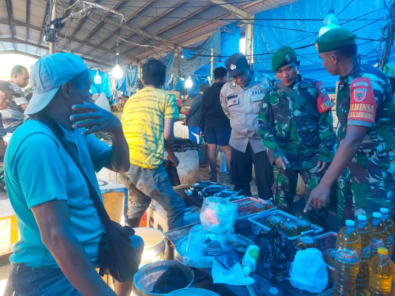 Antisipasi lonjakan harga jelang Bulan Ramadhan, Babinsa Koramil 1426-07/Pattallassang Kodim 1426/Takalar Serka Herman pantau harga sembako di Pasar Sentral Takalar Kelurahan Kalabbirang Kecamatan Pattallassang Kabupaten Takalar Provinsi Sulawesi Selatan. Sabtu 02/03/2024.