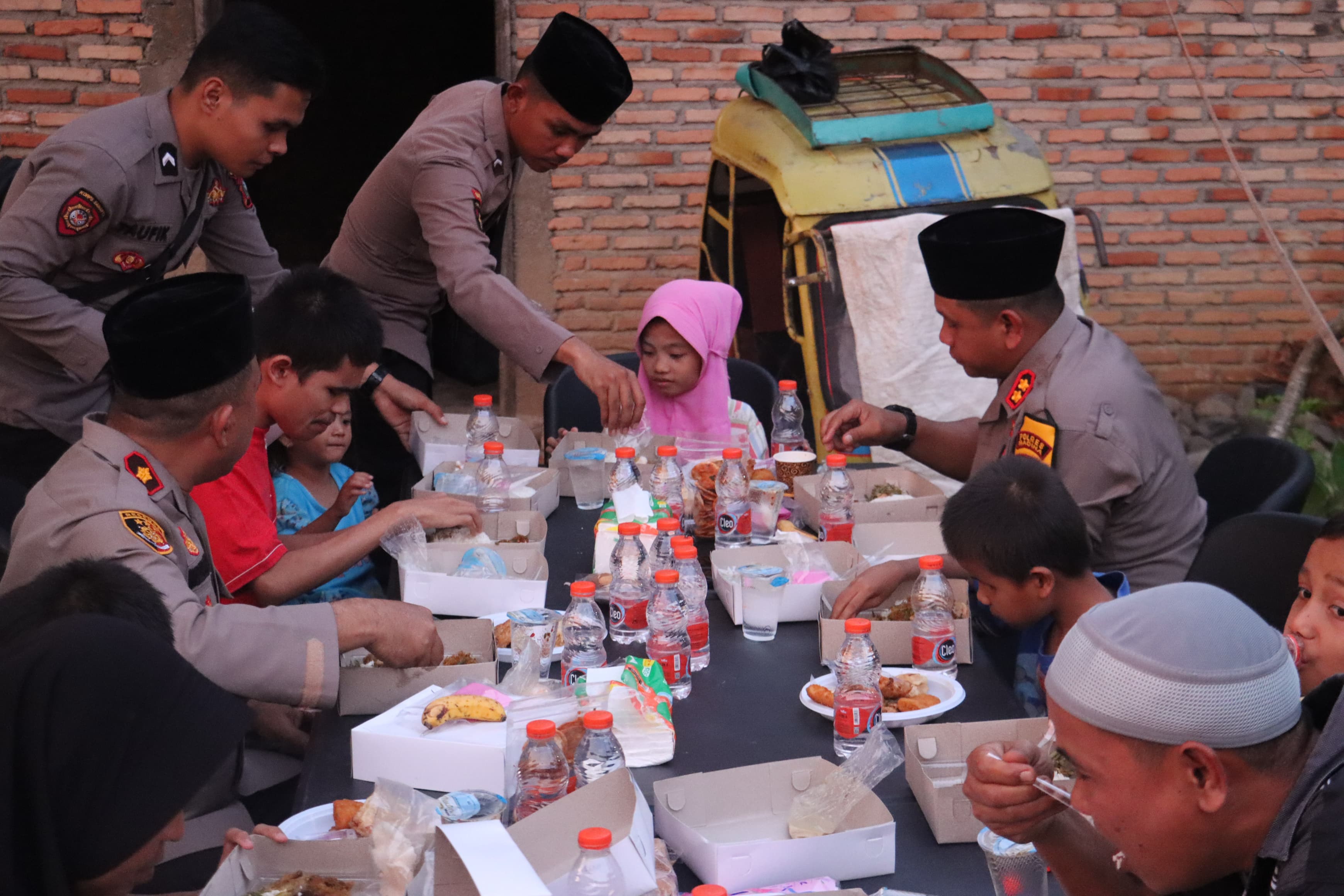 Buka puasa dan penyerahan bantuan dilakukan AKBP Arie didampingi Wakapolres Kompol Marluddin, Kaur Bin Operasi Satuan Reserse Kriminal Ipda Bagus Seto dan sejumlah personel.