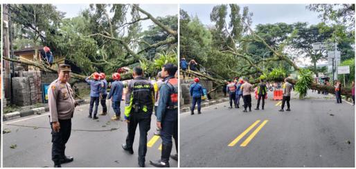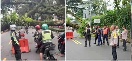 Dalam hal atas kejadian bencana alam ini tidak ada korban jiwa hanya pohon yang tumbang tersebut menghalangi jalan raya dan kendaraan yang akan melintas tertutup, maka pihak Kepolisian Ciawi bersama instansi terkait langsung mendatangi lokasi TKP (Tempat Kejadian Perkara) pohon tumbang tersebut dan langsung berjibaku bergotong-royong bekerjasama melakukan evakuasi penanganan dan kegiatan berlangsung dengan baik aman dan terkendali kondusif dan akhirnya jalan bisa dilalui lagi kendaraan yang melintas. Ujar Kapolsek Ciawi Kompol Agus.
