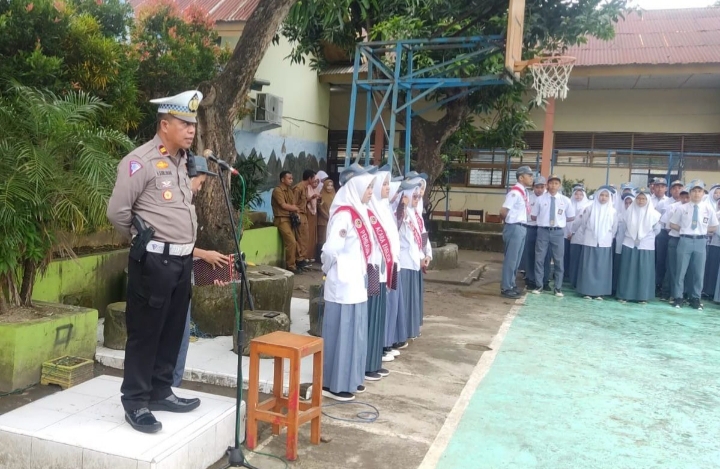 Kegiatan Police Goes To School, Kasat Lantas Polres Takalar Jadi Irup Dalam Upacara Bendera