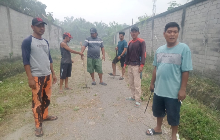 Menyabut bulan suci Ramadhan Ketua Ranting pemuda Pancasila kelurahan Stabat baru gelar gotong royong di jln ampi LK IV kelurahan Stabat baru.