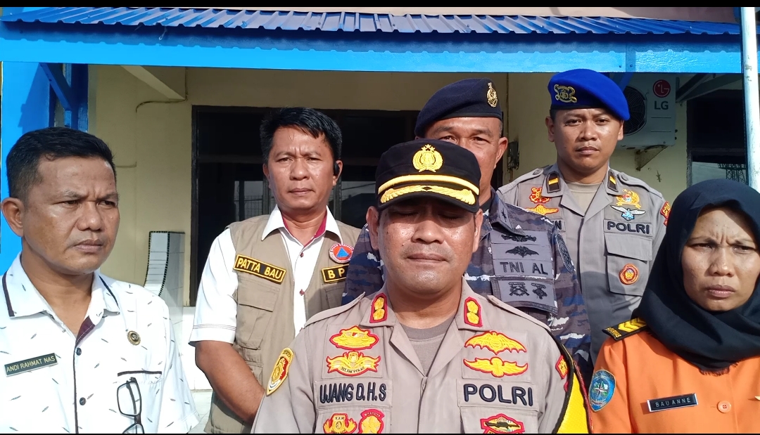 Kapolres AKBP Ujang Darmawan Hadi Saputra,SH.,S.IK.,MM, M.IK memberikan Keterangan Pers, sehubungan dengan update informasi tenggelamnya KM Dewi Jaya 02 di Perairan Kabupaten Kepulauan Selayar Provinsi Sulawesi Selatan.