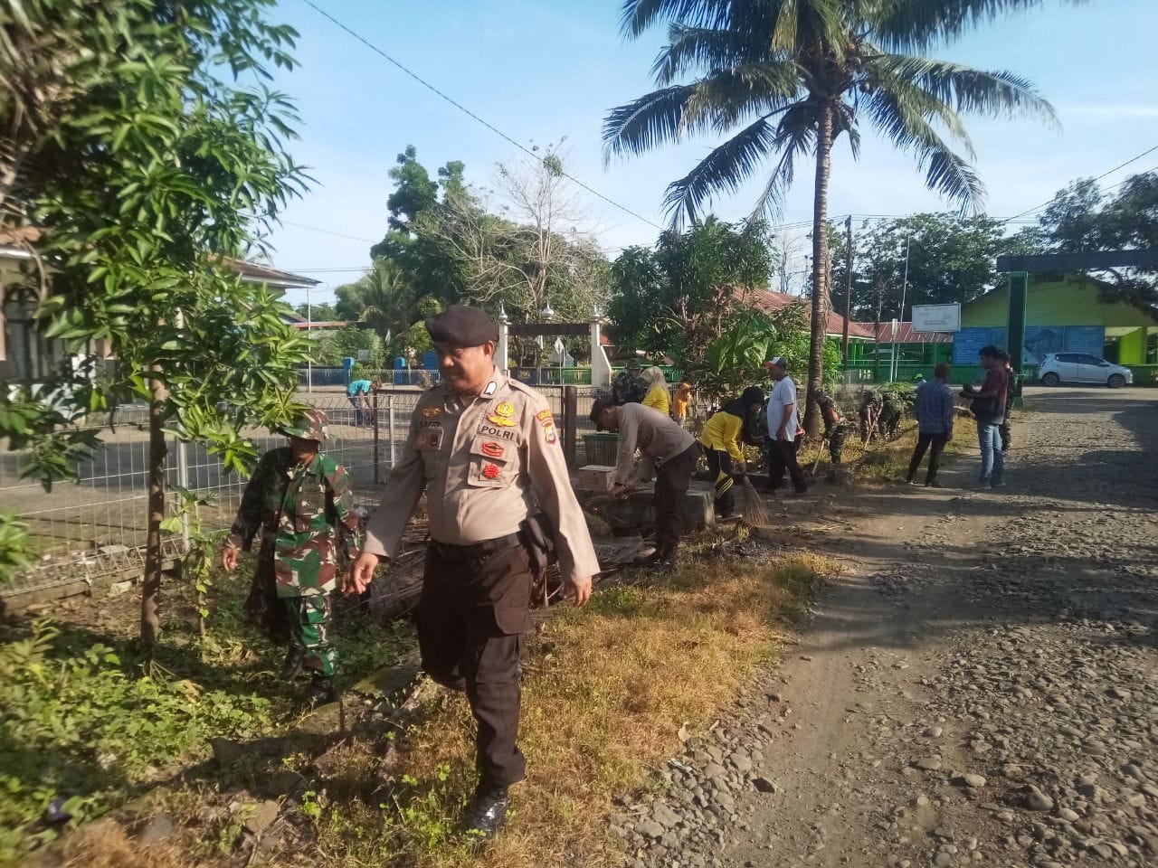 Dengan penuh semangat Personel Koramil 02 bersama masyarakat bergotong royong melaksanakan pembersihan saluran air dan pinggir kiri kanan jalan. Dimulai dari membersihkan Sampah-sampah dan Rumput liar yang tumbuh menutupi sebagian badan jalan.