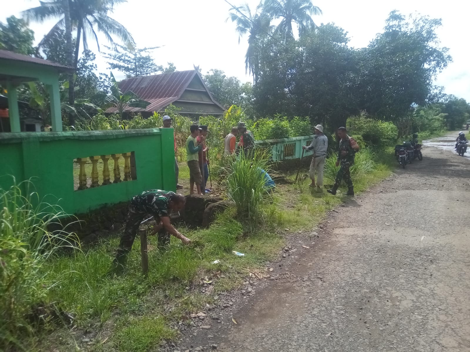 Koramil 02-/Polsel Laksanakan Kerja Bakti Bersihkan Saluran Air Di Ling Parang Labbua