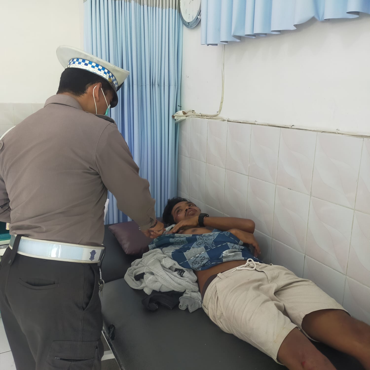 Kendaraan Honda Karisma Nopol DK-3240-FV yang dikendarai oleh saudara Mat Rokhim dari arah Utara ke Selatan hendak mendahului sepeda motor yang ada di depannya yang tidak diketahui identitasnya. Setelah berhasil mendahului, kendaraan oleng ke kanan sehingga jarak terlalu dekat, akhirnya terjadi kecelakaan.