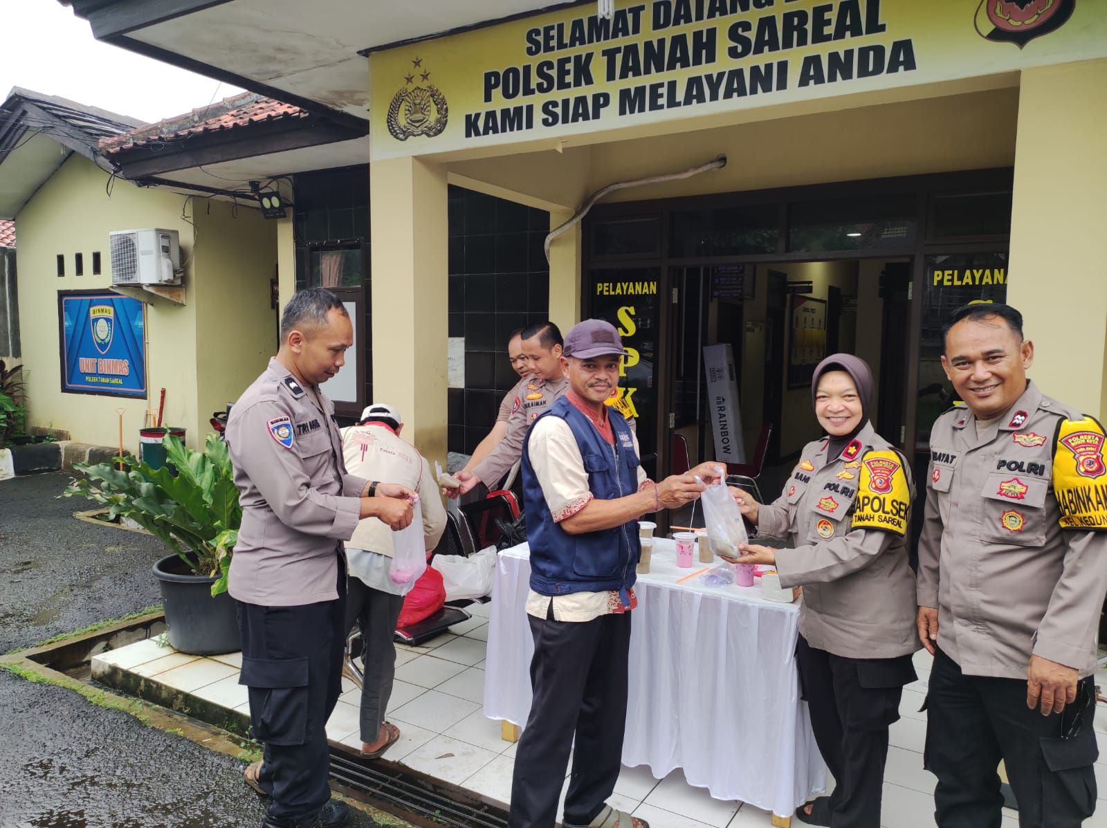Pemberian Takjil dipimpin Kapolsek Tanah Sareal, Kompol R. Ariani, SH. MM, bersama Panit Binmas Ipda Sahid, SH dan anggota Bhabinkamtibmas Polsek Tanah Sareal,