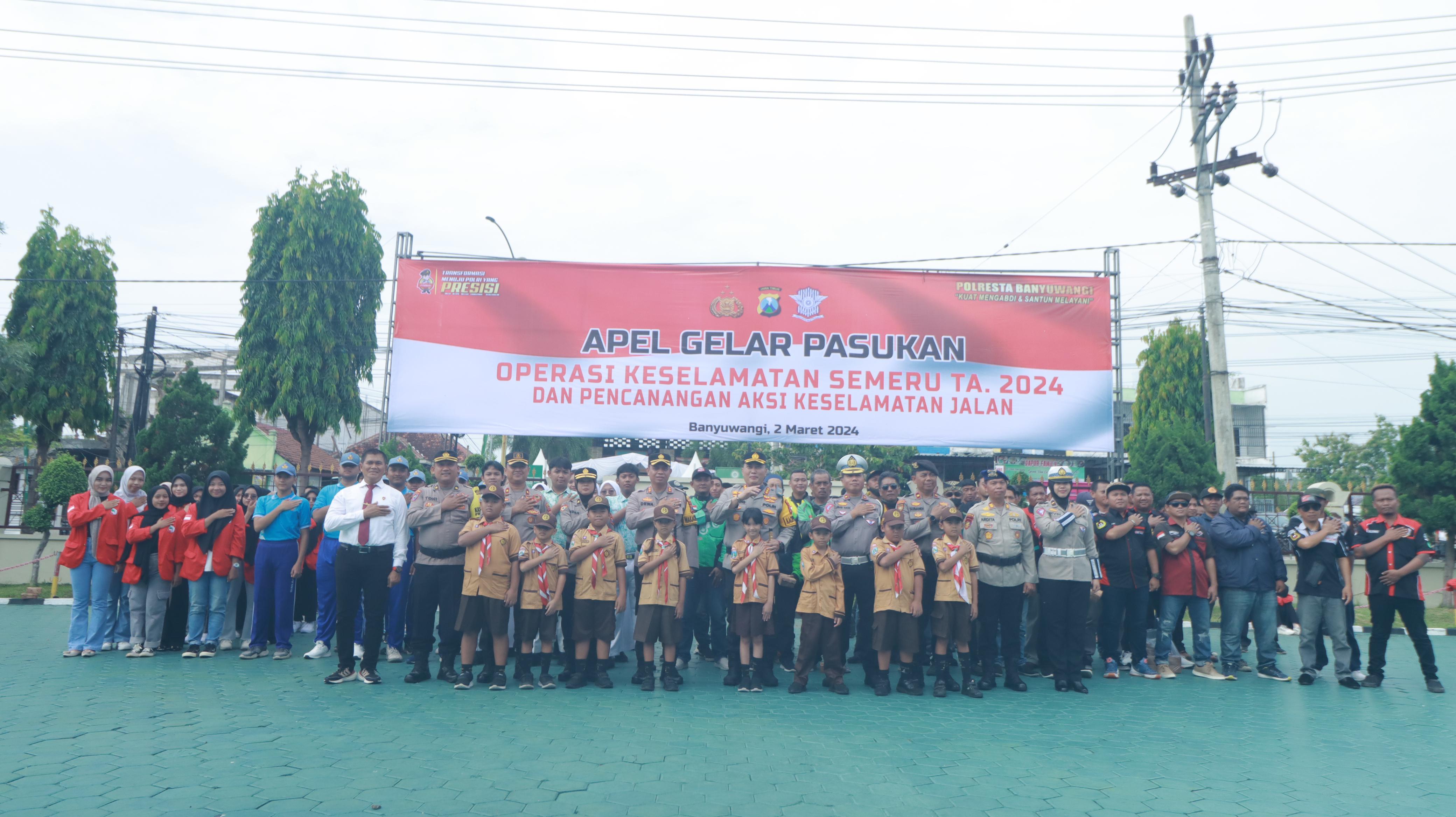 Apel gelar pasukan “Operasi Keselamatan Semeru 2024 dan Pencanangan Aksi Keselamatan Jalan” digelar di Mapolresta Banyuwangi, Sabtu (2/3/2024) pagi.