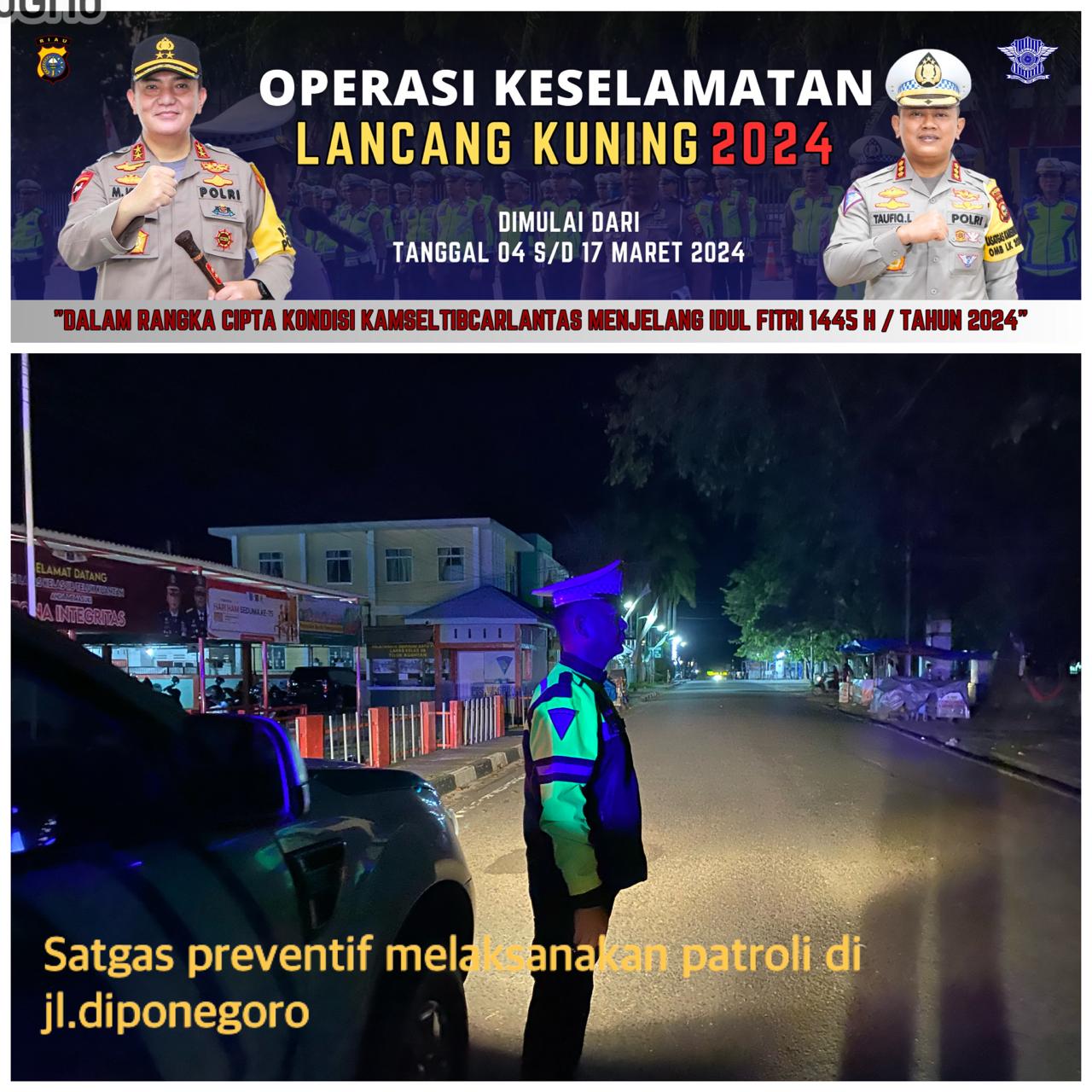 Satuan Lalu Lintas Polres Kuansing telah melaksanakan kegiatan Patroli Blue Light Satgas Preventif Operasi Keselamatan Lancang Kuning 2024 dengan tujuan untuk meningkatkan keselamatan lalu lintas dan membangun kepercayaan masyarakat terhadap Polri, Minggu (10/3/2024) pukul 22.00 WIB.