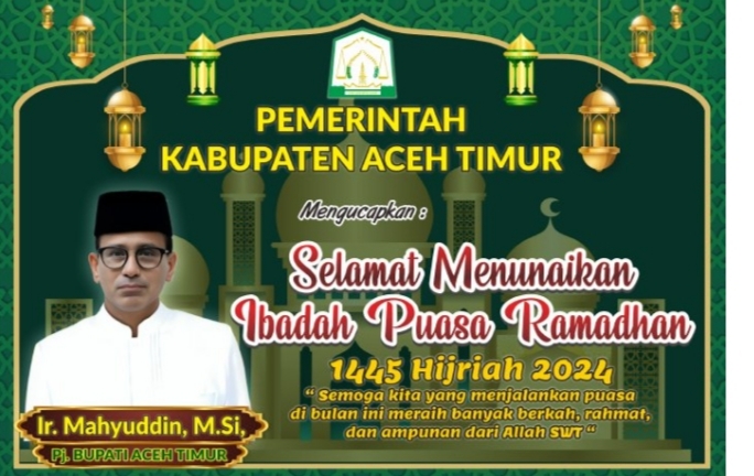 Pj Bupati Aceh Timu, Ir Mahyuddin M.Si atas nama Pemerintah Kabupaten Aceh Timur Mengucapkan ” SELAMAT MENUNAIKAN IBADAH PUASA RAMADHAN 1445 H/2024 M “