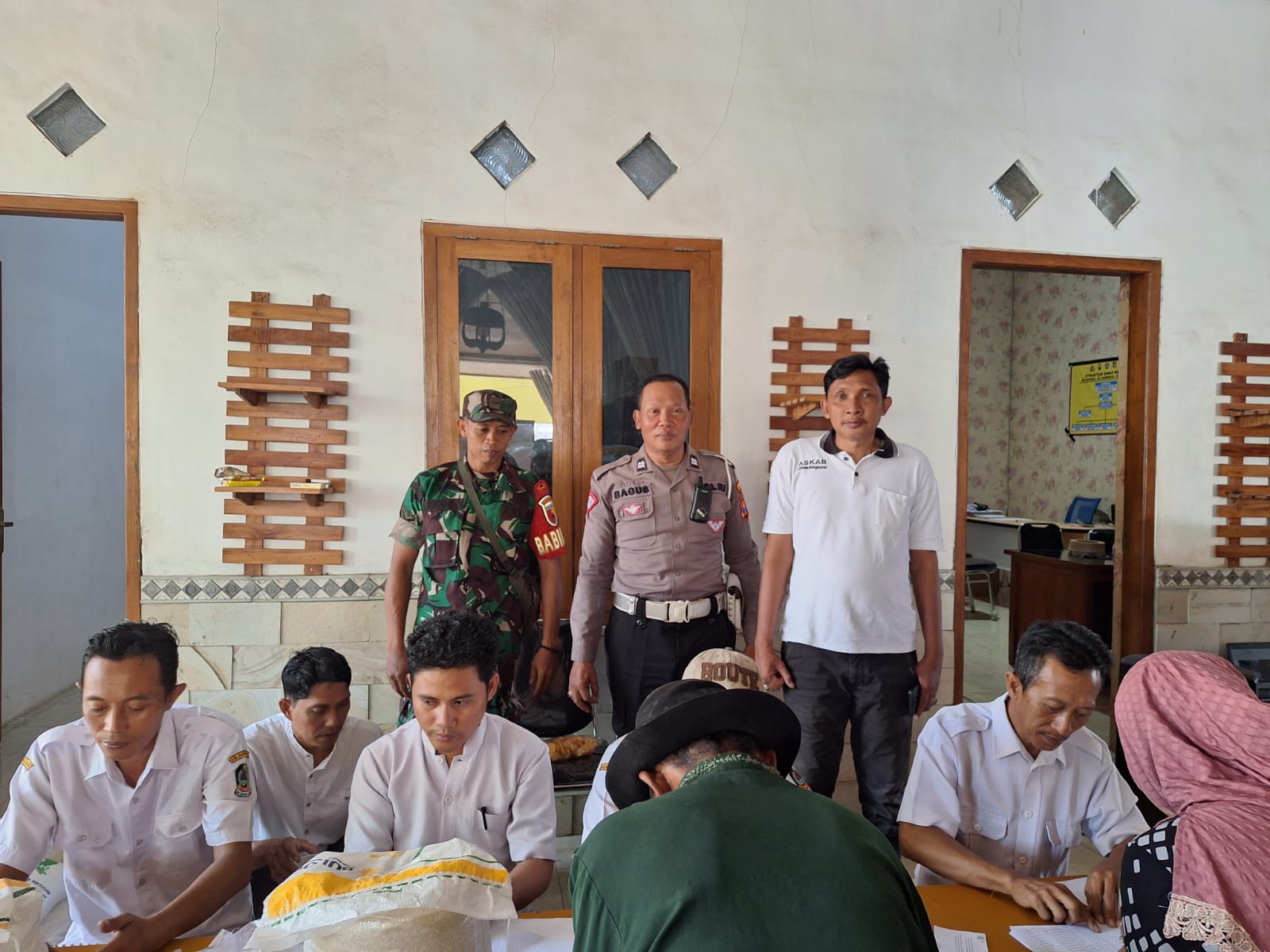 Pastikan berjalan aman dan lancar di setiap kegiatan di desa binaan Babinsa Desa Gintangan Koramil 0825/12 Rogojampi Serda Susanto melaksanakan pendampingan dan pemantauan kegiatan penyaluran bantuan pangan CBP ( Cadangan Beras Pemerintah ) 2024 bertempat di Kantor Desa Gintangan Kecamatan Blimbingsari Kabupaten Banyuwangi. ( 10/03/2024)