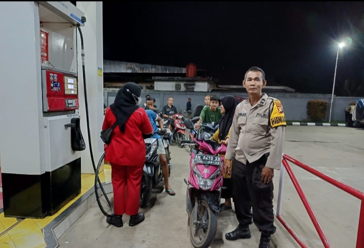 Personil Polsek Kuantan Tengah Patroli Antisipasi Praktik Kecurangan di SPBU Sungai Jering