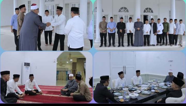 Pj. Bupati Takalar Dr. Setiawan Aswad, di dampingi para pimpinan OPD Kab. Takalar, Kepala Kementerian Agama Takalar bersama jajaran dan Pj. Ketua TP. PKK Takalar menerima kunjungan Syeikh Mahmud Abdul Malik Ahmad Hasan dari mesir di Rumah Jabatan Bupati Takalar Provinsi Sulawesi Selatan. 15/03/2024.