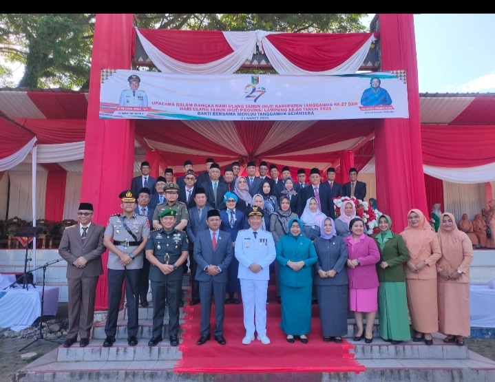 Pemerintah Kabupaten Tanggamus melaksanakan Upacara Bendera Dalam Rangka Memperingati Hari Ulang Tahun Kabupaten Tanggamus ke-27 Tahun 2024.