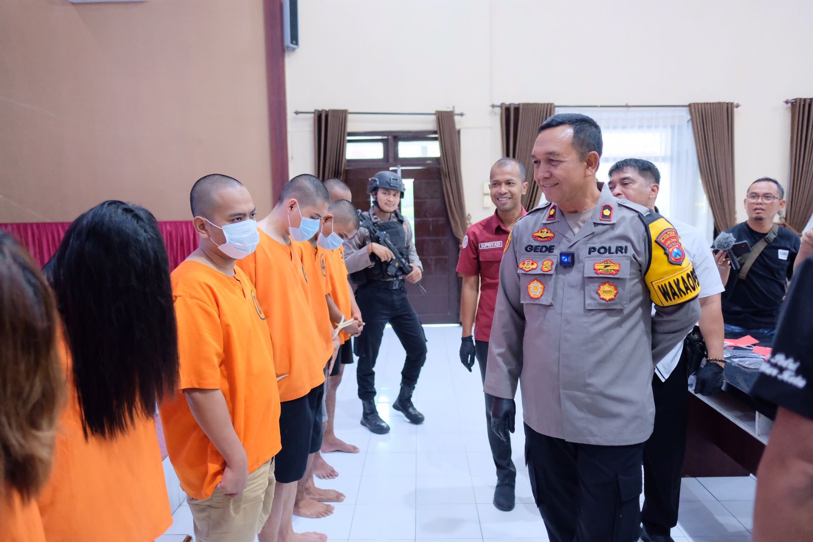 Kompol I Gede menambahkan, para tersangka dijerat dengan pasal 2 ayat 1 UU Nomor 21 Tahun 2007 tentang Tindak Pidana Perdagangan Orang atau pasal 296 KUHP atau pasal 506 KUHP dengan ancaman hukuman paling singkat 3 tahun penjara dan paling lama 15 tahun penjara.