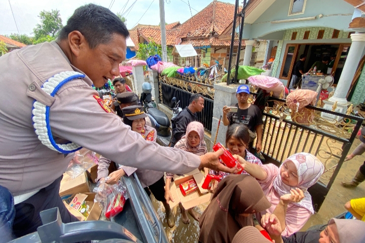 Dalam kesempatan itu, pihaknya juga memberikan bantuan sosial kepada warga terdampak banjir di Kabupaten Cirebon yang membutuhkan. Bantuan sosial yang diberikan berupa 200 paket nasi kotak siap saji, 20 dus biskuit, 30 dus air mineral, dan lainnya. Hingga kini, personel Polresta Cirebon juga masih disiagakan di lokasi untuk membantu warga terdampak banjir.