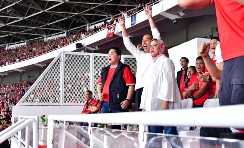 Presiden Joko Widodo turut menyaksikan kemenangan tim nasional sepak bola Indonesia atas Vietnam pada laga lanjutan Kualifikasi Piala Dunia 2026 Zona Asia Grup F di Stadion Utama Gelora Bung Karno, Jakarta, Kamis malam, 21 Maret 2024. Kemenangan 1-0 tim Garuda diraih melalui gol yang dicetak oleh Egy Maulana Vikri pada menit ke-52.