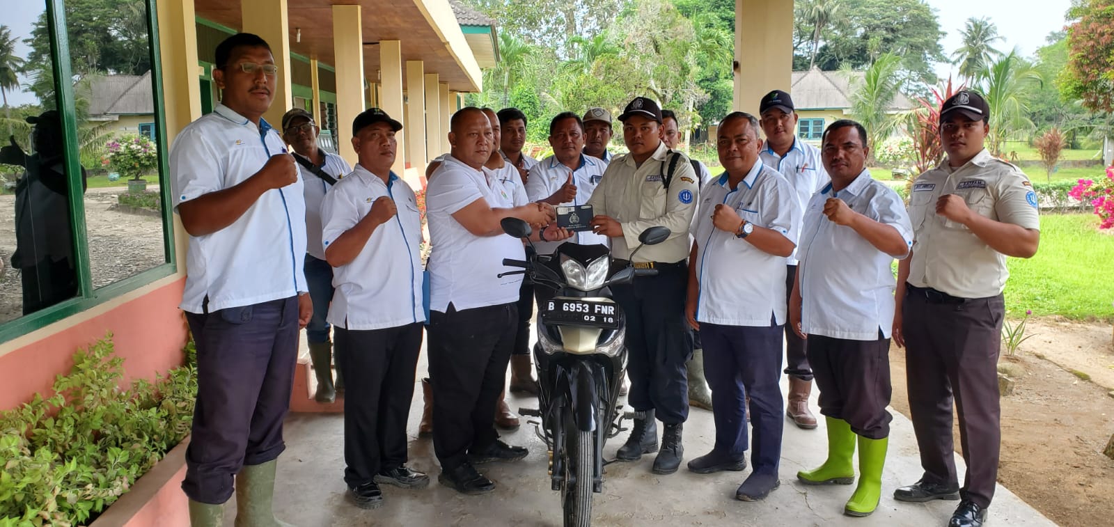 PT. J.W.M-MEDAN WILAYAH DISTRIK III, UNIT KEBUN TINJOWAN MENYERAHKAN BANTUAN LOGISTIK 1 UNIT SEPEDA MOTOR KEPADA SECURITY JWM