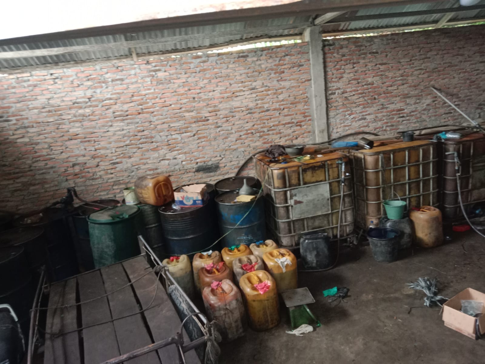 Terlihat E sengaja membangun gudang penimbunan BBM yang diduga bersubsidi jenis solar, sementara saat tim awak media kondisi pintu gudang dalam keadaan terkunci, namun awak media tidak kehilangan akal, dari lobang yang ada dipintu gudang awak media mengintip, terlihat dalam gudang, puluhan jerigen dan Beby Tang berisikan BBM jenis solar seperti yang terlihat pada gambar.