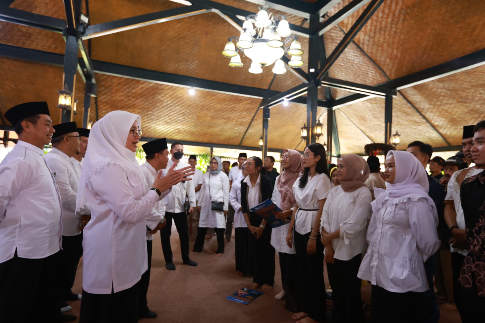 Memasuki Ramadhan Hari ke 15 Bupati Banyuwangi Ipuk Fiestiandani bersilaturahmi dengan puluhan seniman dan budayawan daerah di Pelinggihan Dinas Pariwisata, Selasa (26/3/2024). Pada momen tersebut Bupati Ipuk mengajak para seniman dan budayawan untuk terus berkolaborasi dengan pemerintah daerah memajukan seni budaya daerah.