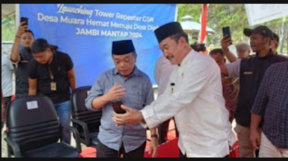 Tower repeater GSM yang dibangun Diskominfo Provinsi itu, dilaunching Gubernur Jambi Al Haris dan disaksikan Pj Bupati Merangin Mukti, Jumat (15/03/2024).
