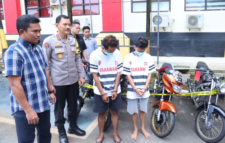 Dalam kurun waktu 3 hari, 2 (dua) orang pelaku pencurian kendaraan bermotor (curanmor) berinisial EJS alias ED dan BS alias MZ berhasil diamankan Tim Opsnal Subdit 3 Jatanras Ditreskrimum Polda Kepri. Hal tersebut disampaikan oleh Kabidhumas Polda Kepri Kombes. Pol. Zahwani Pandra Arsyad, S.H., M.Si., didampingi Dirreskrimum Polda Kepri Kombes. Pol. Adip Rojikan, S.I.K., M.H., dan Kasubdit 3 Jatanras Ditreskrimum Polda Kepri Kompol Mikael Hutabarat, S.H., S.I.K., M.H., pada saat Konferensi Pers di Lobby Ditreskrimum Polda Kepri. Kamis (14/3/2024).