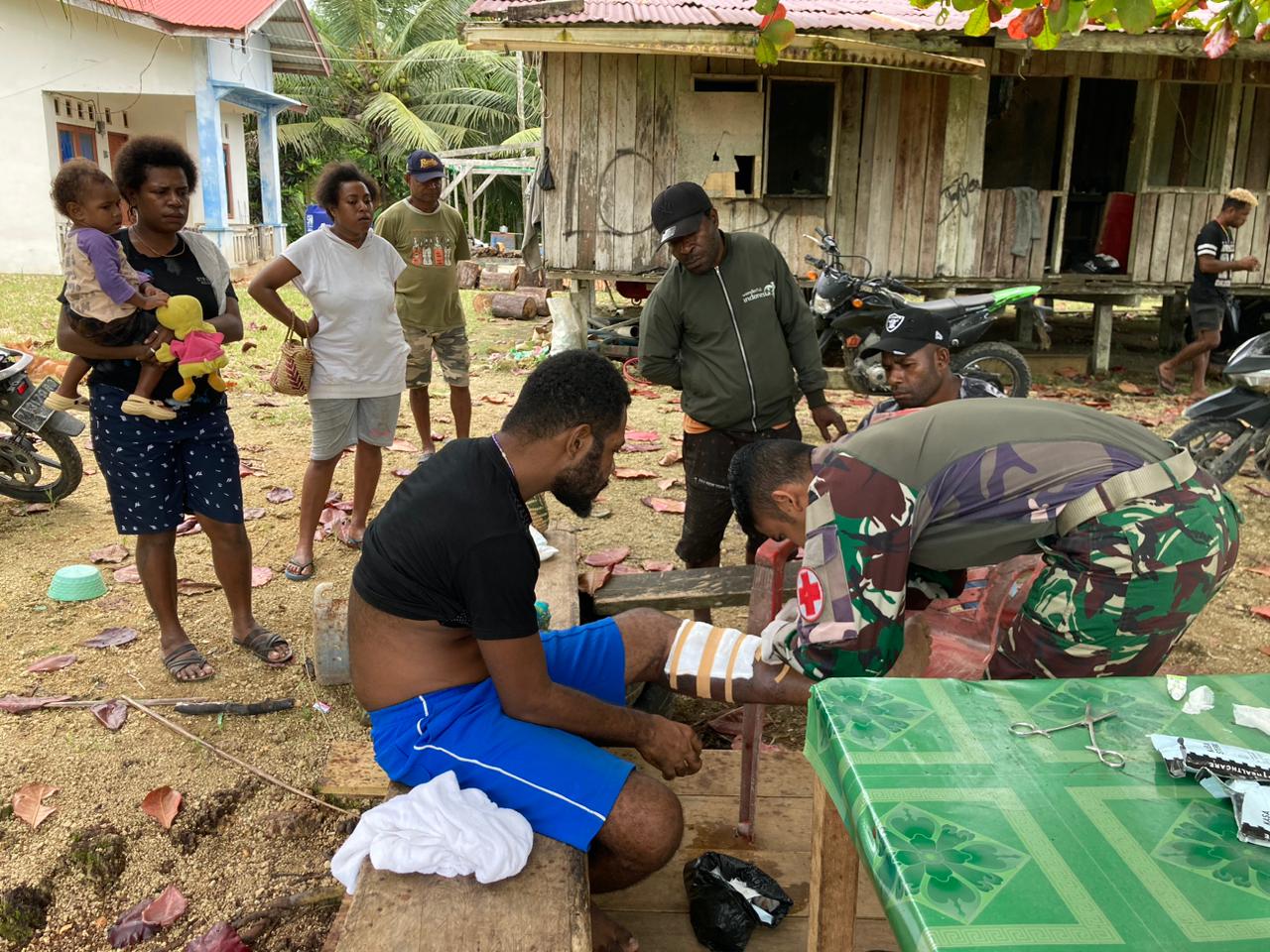 Takes Satgas Yonif 122/TS, Gerak Cepat Berikan Perawatan Luka Infeksi Pada Masyarakat Kampung Mosso