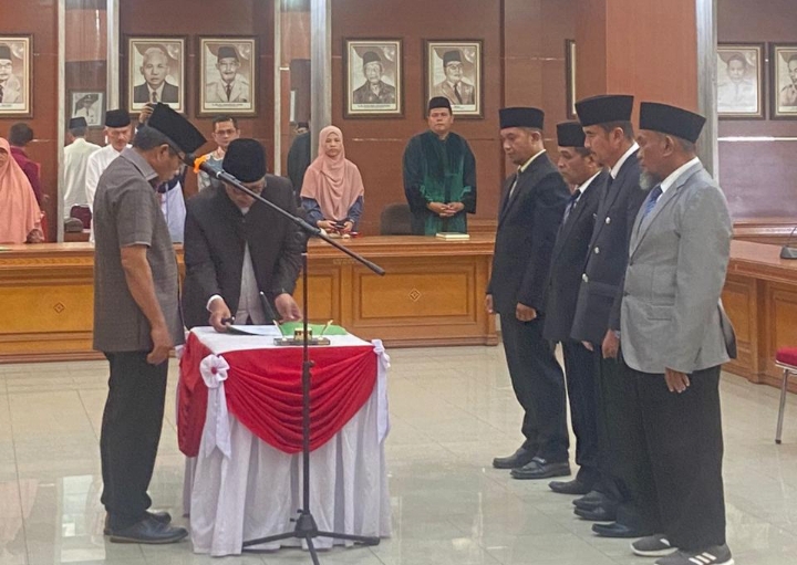 Wali Kota (Wako) Bukittinggi Sumatera Barat, diwakili Sekretaris Daerah (Sekda) Kota Bukittinggi, Martias Wanto, mengukuhkan empat pimpinan Pengganti Antar Waktu (PAW) Badan Amil Zakat Nasional (Baznas) Kota Bukittinggi periode 2020-2025.