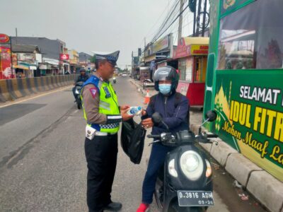 Aksi Simpatik Pengendara Memberikan Roti dan Air Mineral Kepada Personel Pospam Saat mengatur Arus Lalulintas