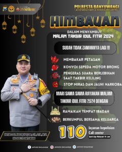 Polresta Banyuwangi bahkan mengeluarkan imbuan agar masyarakat tidak melakukan aktivitas berlebihan selama malam takbir.
