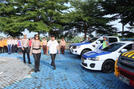 Polres Pesawaran-Polda Lampung_Dalam persiapan mengamankan perjalanan arus mudik dan arus balik selama momentum hari raya Idul Fitri 1445 H, Polres Pesawaran Polda Lampung bersama seluruh stakeholder terkait menggelar upacara operasi kemanusiaan terpusat dengan sandi Ketupat krakatau 2024, Rabu (03/04/24) pagi.