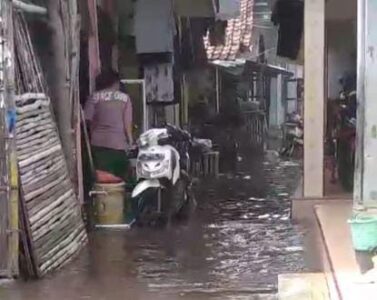 Gelombang tinggi yang disertai pasang air laut menerjang wilayah Pantai Muncar, Kecamatan Muncar, Banyuwangi. Akibatnya, dilaporkan tiga bangunan rusak parah oleh hantaman ombak yang mencapai ketinggian 2-4 meter, selain itu puluhan rumah warga pesisir tergenang air Laut, Senin 8/4/2024.