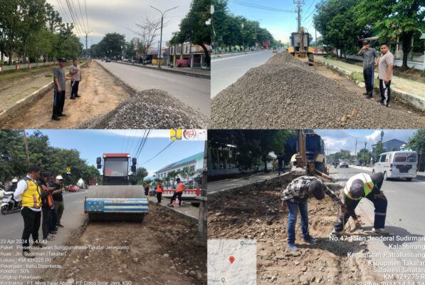 Lanjut : Pj Bupati Takalar Dr Setiawan Aswad, Ia juga mengatakan bahwa Selama ini pemda hanya mampu merawat dalam Skala kecil, misanya menambal, bahu jalan yang berlubang agar Tidak membahayakan pengendara. Adapun ruas bahu jln akan diaspal ± Sepanjang 600 M. Pj Bupati Telah meminta Kadis PUPR Untuk mengawal pelaksanaan pekerjaan Dengan senantiasa b mm Berkomunikasi dan berkoordinasi dengan Balai Jika terdapat kendala yang Dihadapi.