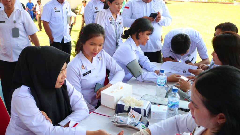 Kegiatan ini merupakan salah satu agenda dari Kegiatan Pemasyarakatan Sehat dimana dilaksanakan dalam rangka menyambut hari bhakti pemasyarakatan ke – 60 tahun 2024..Pemeriksaan yang diberikan berupa pengecekan tensi darah, Kolesestrol, hingga Kadar Gula Darah, yang setiap rangkaiaannya dilaksanakan dengan baik dan teliti oleh tenaga medis Lapas Pematangsiantar.