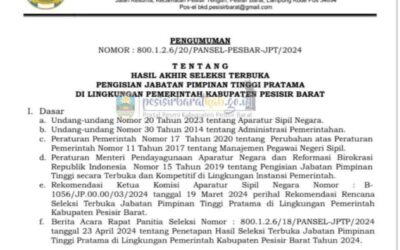 Pesisir Barat Lampung – jurnalpolisi.id Wakil Bupati Pesisir Barat (Pesibar), A. Zulqoini Syarif, S.H., kembali menghadiri rapat paripurna Dewan Perwakilan Rakyat Daerah (DPRD) yang kedua dengan agenda persetujuan Rancangan Peraturan Daerah (Ranperda) usul kepala daerah dan inisiatif DPRD Pesibar Tahun 2024, di ruang rapat paripurna DPRD Pesibar, Jumat (26/4/2024). Rapat yang dihadiri 22 dari 25…