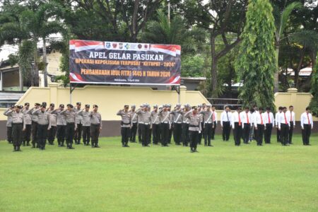 Kepolisian Resor (Polres) Bulukumba Polda Sulselv laksanakan apel gelar pasukan operasi kepolisian terpusat “Ketupat 2024” dalam rangka pengamanan Idul Fitri 1445 Hijriah di wilayah Kabupaten Bulukumba.