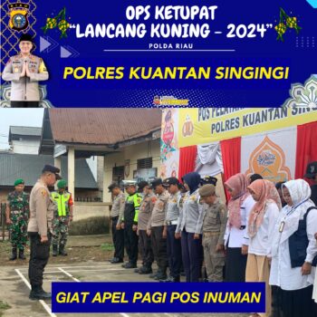 Kapolres Kuansing AKBP Pangucap Priyo Soegito, S.I.K.,M.H., mengatakan, “Di Desa Kasang, Kecamatan Kuantan Mudik, Pos Pelayanan Ops Ketupat Tahun 2024 dipimpin oleh Kaposyan Iptu A. Razak. Dalam apel yang digelar pada pukul 08.00 WIB, personil dari berbagai instansi seperti Polri, TNI, Dishub, Sat Pol PP, dan Nakes dikerahkan dengan kuat,” ujar Kapolres.