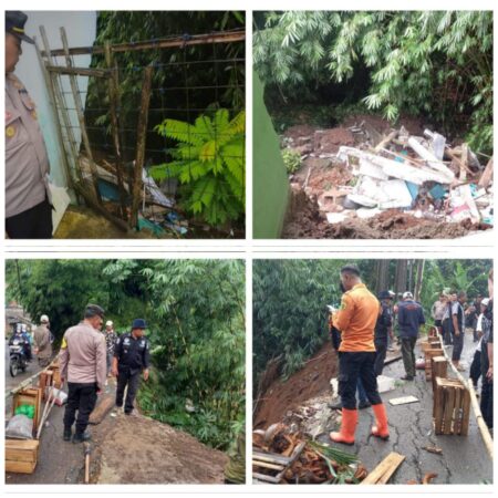 Polsek Dramaga Bersama Instansi Terkait Cek Lokasi TKP Tanah Longsor dan Rumah Roboh Terjadi di Dramaga, Kab. Bogor