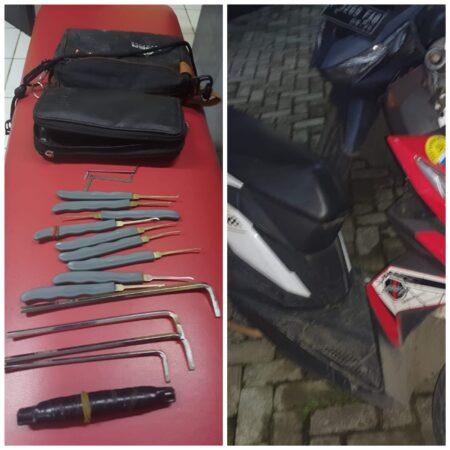 Dari hasil olah TKP pihak Kepolisian Polsek Gunung Putri di mana diduga modus operandi dari pelaku melakukan pencurian dengan menggunakan kunci palsu atau kunci T, dan barang bukti yang berhasil diamankan pihak Kepolisian adalah STNK sepeda motor Honda No. Pol. B 4279 TMY, Noka; MH1JM2117GK025580, Nosin; JM21E1029536, 1 buah kunci kontak, 1 unit sepeda motor Honda Beat No. Pol B 4279 TMY warna merah putih, kunci L empat batang, kunci ujung bengkok 9 buah, kunci leter Z 2 buah, 1 tas kunci dan 1 buah tas gemblok.