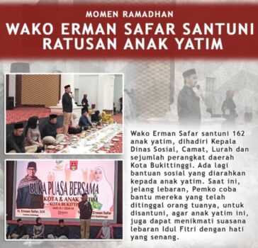 Peduli Sesama, BPS Bunda dan PMI Bukittinggi Distribusikan Sejumlah Bantuan untuk Pesisir SelatanSekretaris DPRD Sumbar, Raflis, Serahkan secara Langsung Santunan kepada Anak YatimWakil Walikota Bukittinggi, Kunjungi Pasar Pabukoan di Terminal Aur Kuning