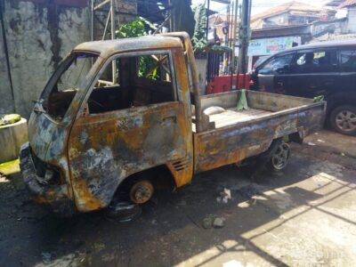 Sebuah Mobil Suzuki Losbak Terbakar di Cibungbulang Sopir Alami Luka Bakar Serius, Polsek Cibungbulang Lakukan Investigasi