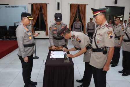 Pagi ini, Kapolres Kebumen AKBP Recky memimpin upacara serah terima jabatan atau Sertijab yang diikuti personel yang mutasi berdasarkan surat keputusan Kapolda Jateng.