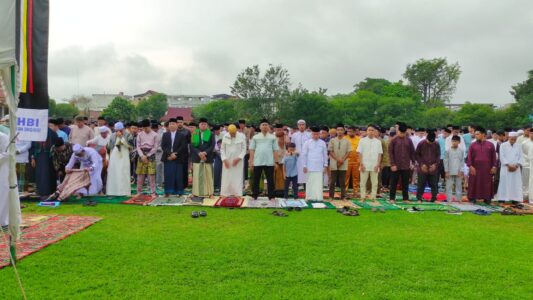 “Sholat Idul Fitri yang dipimpin oleh H. Supriadi, S. Ag, M.Pd, diikuti oleh ribuan jemaah yang hadir. Tausiah Idul Fitri yang disampaikan oleh H. Efendi, MA, MH, CDAI, juga memberikan pesan tentang rasa syukur, silaturahmi, dan pentingnya menjaga keamanan selama perayaan Idul Fitri,”