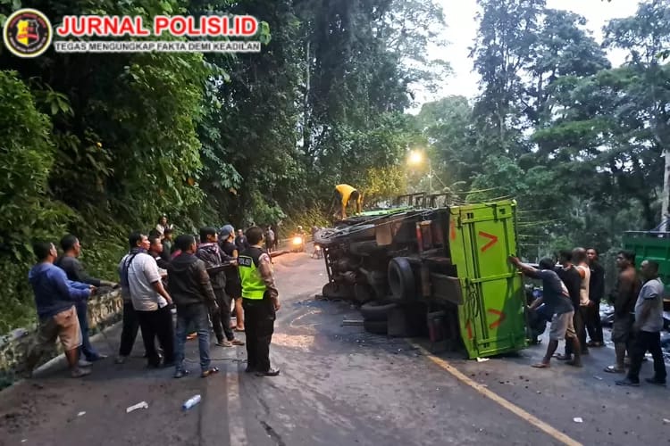 Truk Muatan Kaca Terguling di Tikungan Mbah Singo Jalur Gumitir, Lalu Lintas Sempat Macet Total