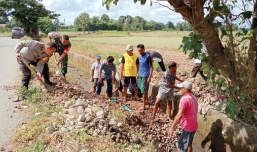 Dengan penuh semangat Babinsa, Bhabinkamtibmas Bersama warga gotong Royong membersihkan Irigasi yang tersumbat Akibat banyaknya sampah dan tanah didalam saluran Irigasi yang menyebabkan Tersumbatnya aliran air Pada area persawahan milik Warga di Kalumba’ngara Desa Lantang.